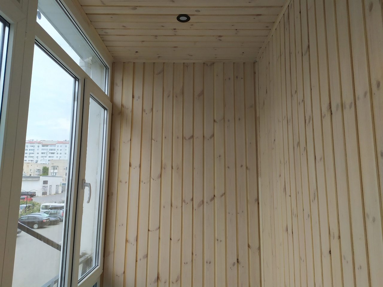 Если это каркасная система, то мы можем обшить балкон мдф панелями, ламинатом, деревянной вагонкой пластиковой вагонкой, гипсокартоном с последующей шпаклевкой, покраской или поклейкой обоев.