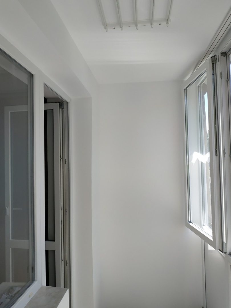 Если производится на балконе малярные работы (штукатурка, шпаклевка, покраска), то потолок устанавливается двух видов, натяжной или из гипсокартона.